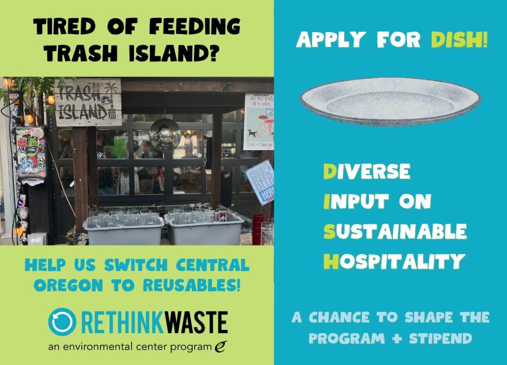 The Rethink Waste Project offers durable dishware kits in an effort to encourage the community to make the switch from disposables to reusables. Three (3) kits are available in sets of (25) place settings. A kit includes: cups, bowls, plates, spoons, forks, and knives.