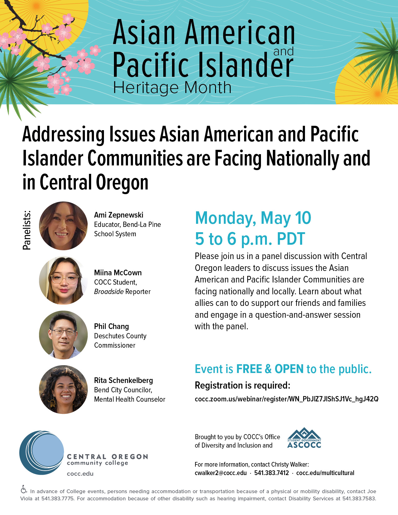 $65 – $75Please join COCC in a panel discussion with Central Oregon leaders to discuss issues the Asian American and Pacific Islander Communities are facing nationally and in our communities.