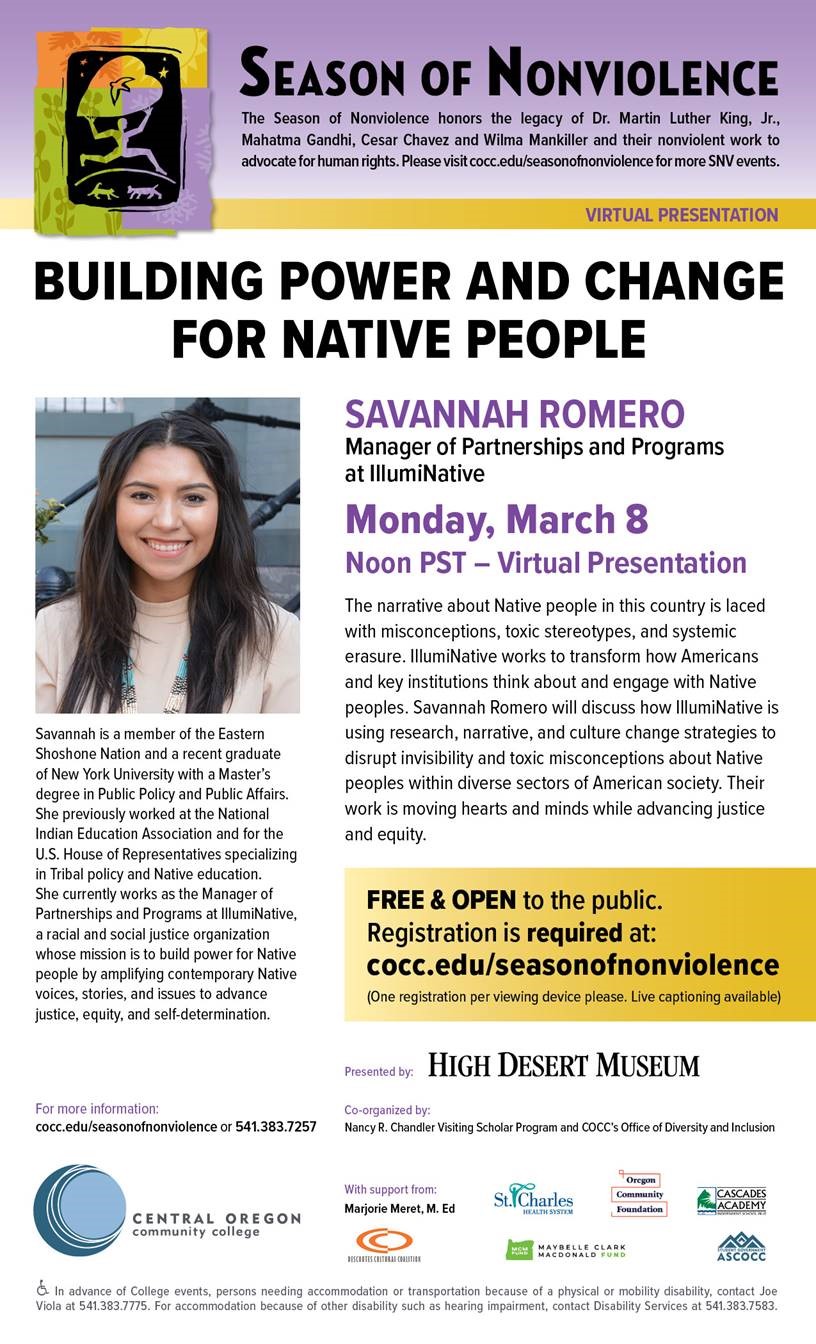 $65 – $75The narrative about Native people in this country is laced with misconceptions, toxic stereotypes and systemic erasure. IllumiNative works to transform how Americans and key institutions think about and engage with Native peoples. Savannah Romero will discuss how IllumiNative is using research, narrative, and culture change strategies to disrupt invisibility and toxic misconceptions about Native peoples within diverse sectors of American society. Their work is moving hearts and minds while advancing justice and equity.