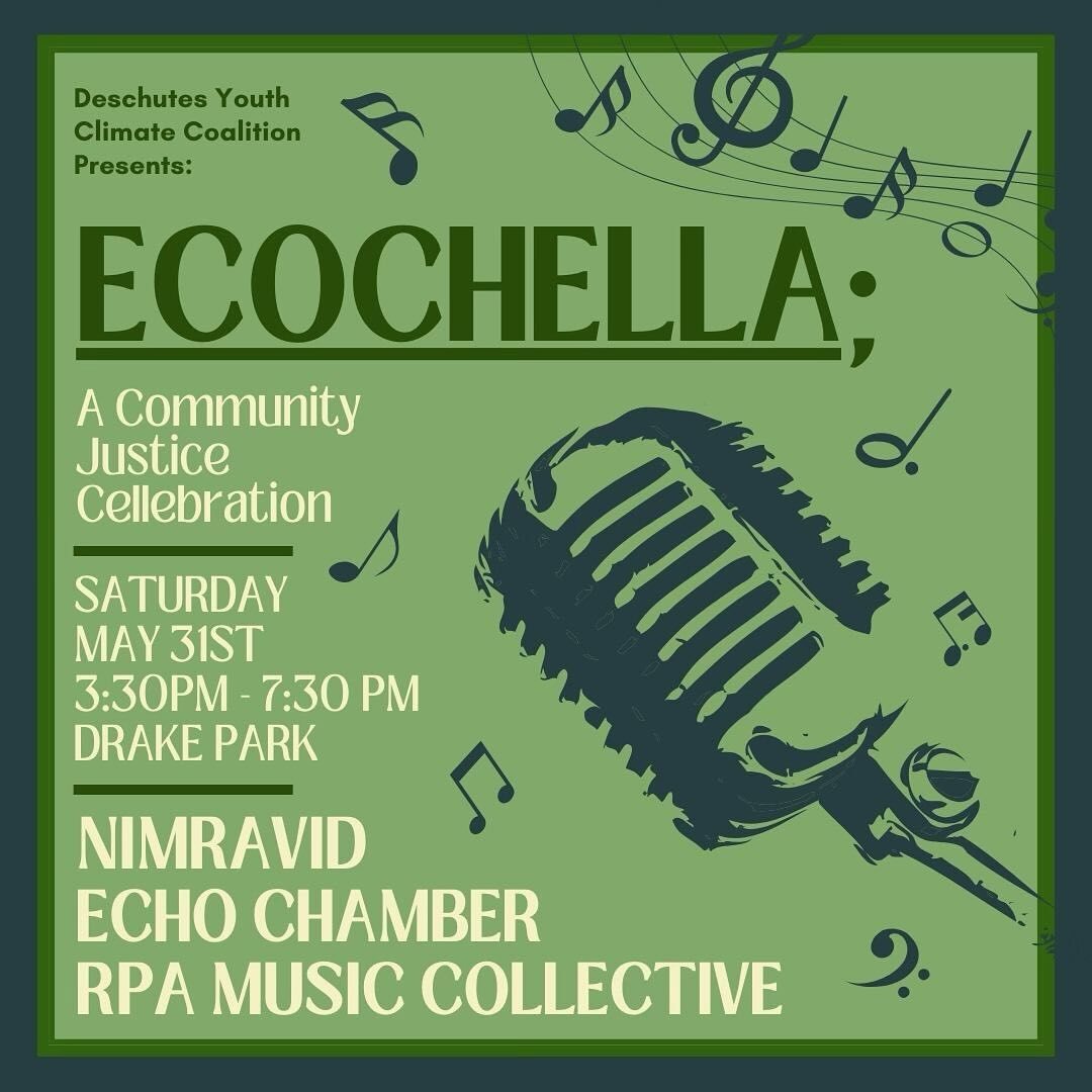 The Deschutes Youth Climate Coalition proudly presents ECOCHELLA: A Community Justice Celebration. In this time of uncertainty and harm towards many of our community members, we are creating a safe space focused on joy. This will be a fun community-building event, centering climate justice and connected movements for human rights. Drake park has never looked so cool, resistance has never been so fun. There will be music! There will be bubbles! There will be dancing! This is an event for all ages, so bring your kids and friends. Hope to see you there!