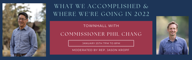 Join Commissioner Chang for a town hall moderated by Rep. Kropf on Tuesday, January 25 from 7-8pm!