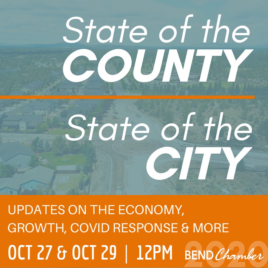 $65 – $75You’re invited to join the Bend Chamber, in partnership with Cascade Insurance Center and Mid Oregon Credit Union, for annual updates on the State of the County and State of the City.