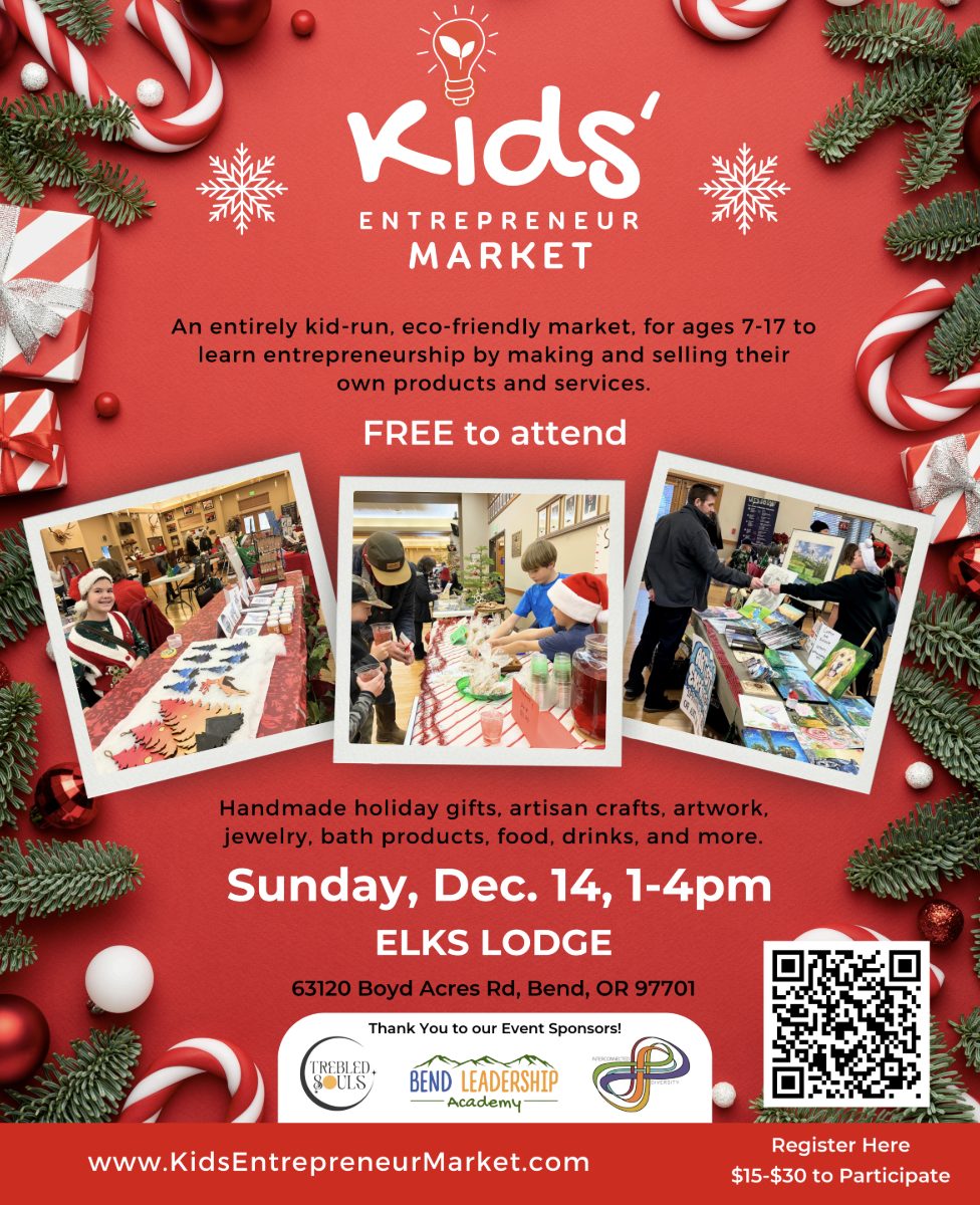 The Kids’ Entrepreneur Market is an entirely kid-run, eco-friendly market, for ages 7-17 to learn entrepreneurship by creating and selling their own products and services. This is a real-world experience that allows children to be creative, build confidence, learn skills beyond the classroom - and above all, have fun! Handmade gifts, artisan crafts, artwork, food,…