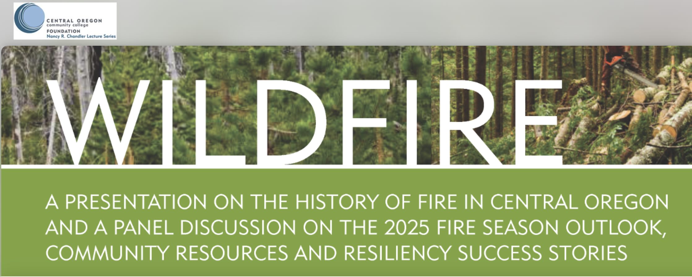 As fire season approaches, wildfire remains a top concern for communities across Central Oregon. Join us for an informative event that will begin with a presentation exploring the history of fires in Central Oregon, the implications of past fire suppression efforts and pathways toward greater community resiliency. Following the presentation, a diverse group of local,… |