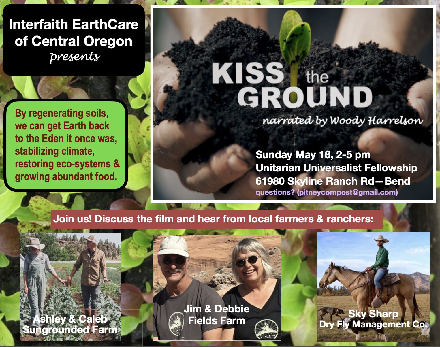 Unitarian Universalist Fellowship of Central Oregon 61980 Skyline Ranch Rd., Bend, Oregon, Bend, OR, United StatesJoin the Interfaith EarthCare of Central Oregon for the film Kiss the Ground, a masterpiece on the regenerative agriculture movement. Hear from local farmers and ranchers in the region who are doing incredible work to revive the planet.